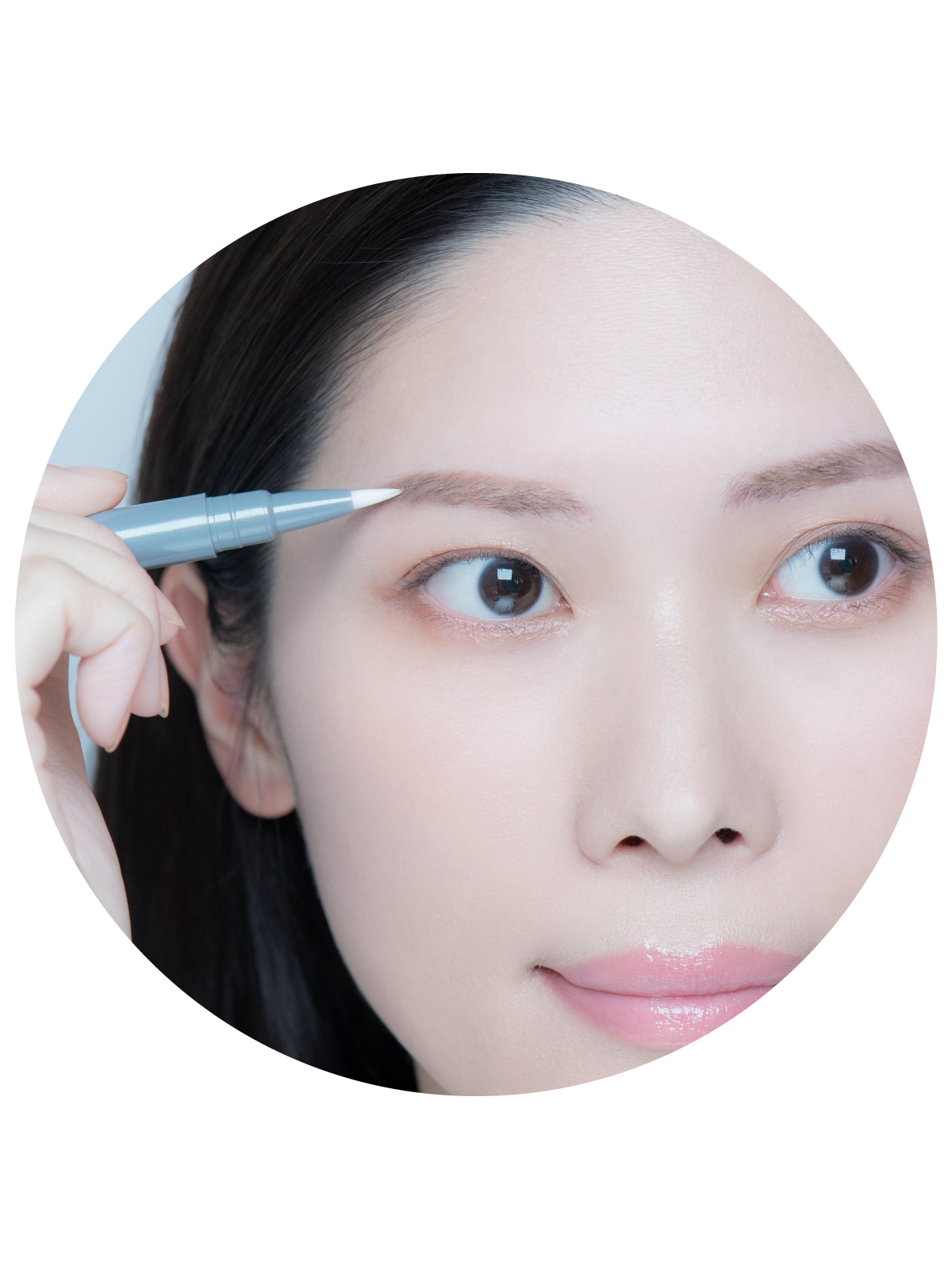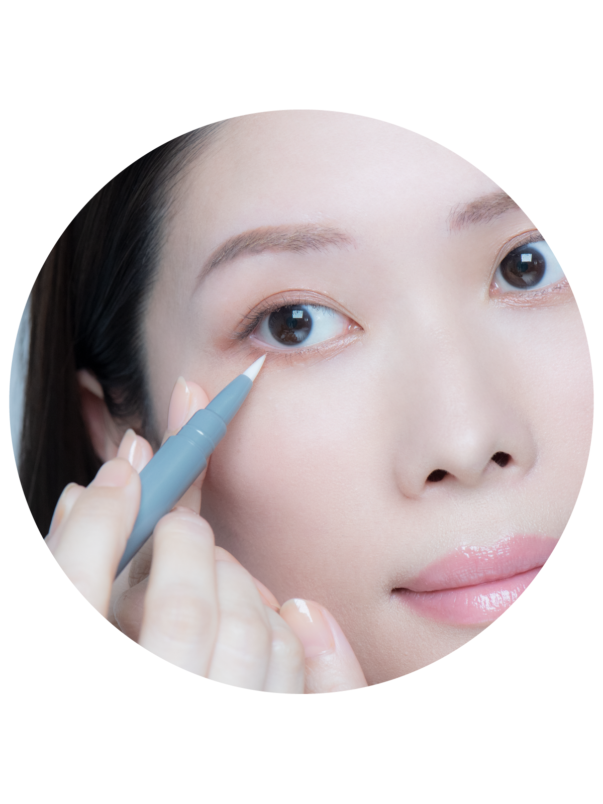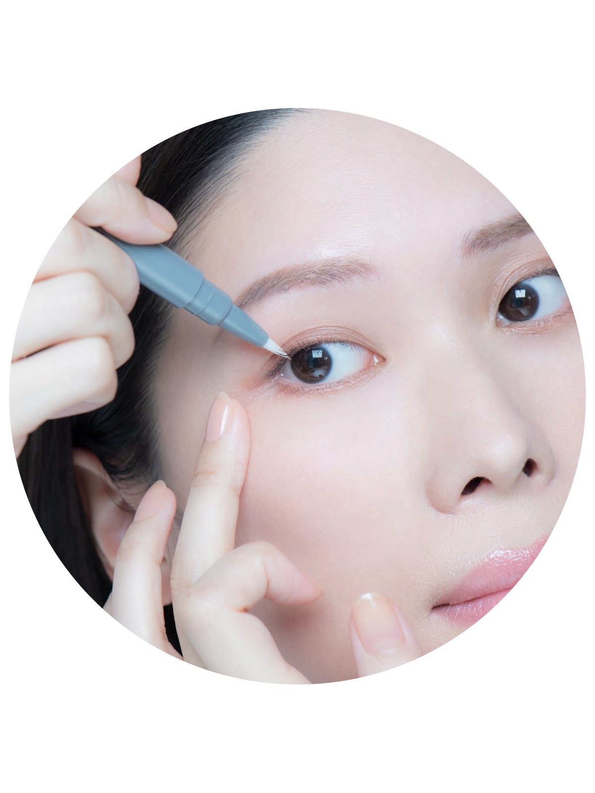 قم بتطبيق كمية مناسبة بلطف من الزاوية الداخلية إلى الزاوية الخارجية من العيون. تقدم برفق لملء الفجوة بين الشعر والشعر.